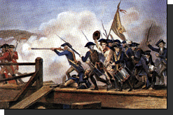 about sixty or seventy yards from us, huzzaing, and on a quick pace towards us ...." John Robbins, Militiaman "Damn them, we will have them!" "Lay down your arms, you damned rebels!" "the shot heard 'round the world" |