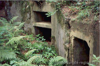 Position of five bunkers (10) comprises men shelters (see picture) and munitions storage bunkers.