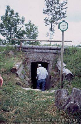 Entrance to underground gallery passing under modern road Col de la Cote de l'Engin