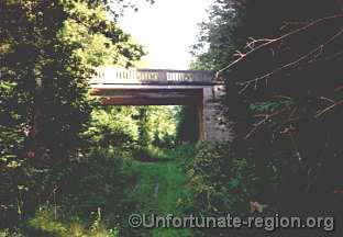 ill. 9: Bridge over the former railroad of the "International road" Courtavon – Pfetterhouse. The Swiss checkpoint Nr. 3 was situated just at the right end of this bridge. The railroad track from Bonfol to Pfetterhouse, inaugurated in 1910, formed the border.