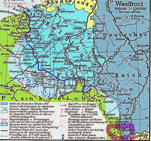 The German Empire remitted the declaration of war to France on August 3rd 1914 and invaded Belgium one day later. (See map of ill. 1)