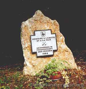 It recalls the liberation of Pfetterhouse in WW2 on November 19th, 1944 (by troupes of General Caldairou) and the "Friendship and Peace" which now finally exist between these nations. Inscription: