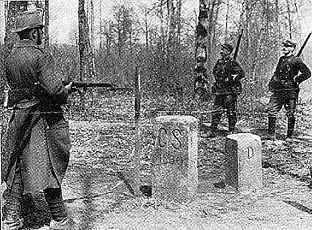 On July 31st, 1914 the Inf. Reg. 142 occupied his area with outposts on the line Cernay (Sennheim) – Dannemarie (Dammerkirch) – Swiss Border. The regiments of cavalry and mounted riflemen reinforced the customs officials and patrolled in the border area.