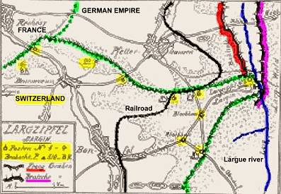 The Swiss army had to prevent that neither the German nor the French army could gain an advantage by attacking the adversary over Swiss territory from the back – by using the convenient roads in the Largue pocket or on the Réchésy – Courtavon (Ottendorf) axis. The above map (of illustration 7) shows clearly how easy that would have been for both adversaries.