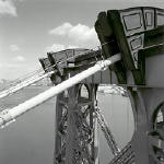 The towers soared 650 feet above the water, while the double-deck roadway was