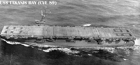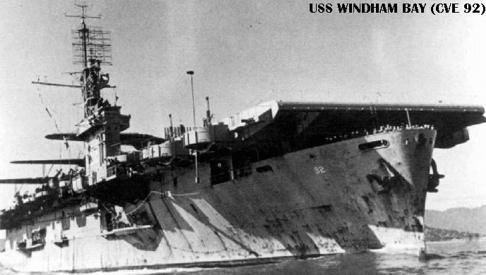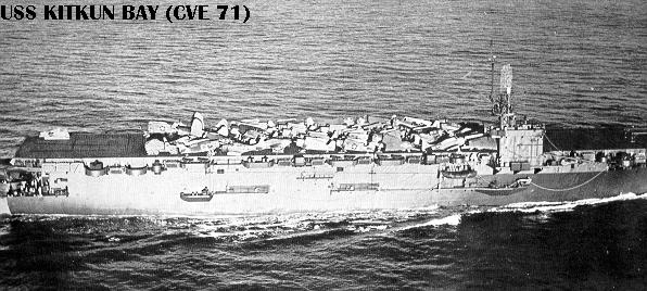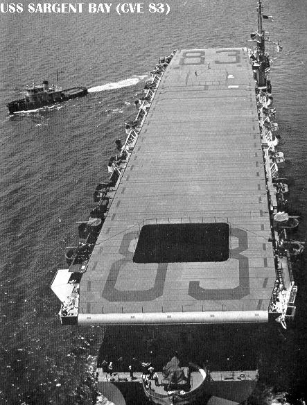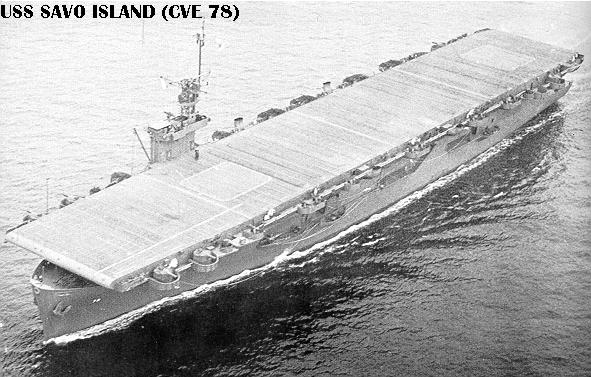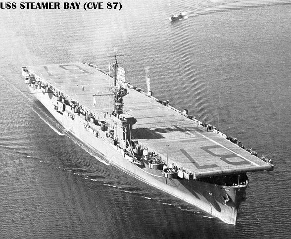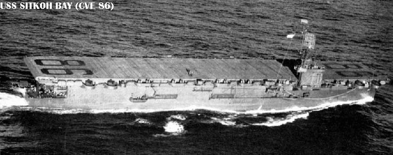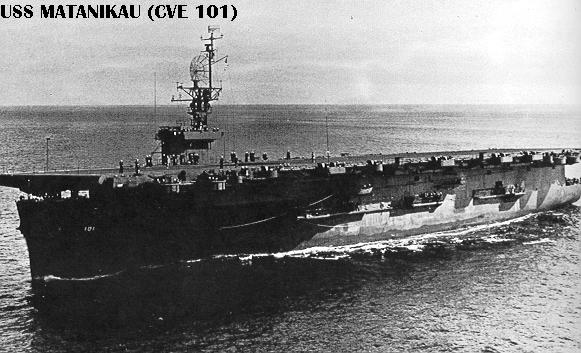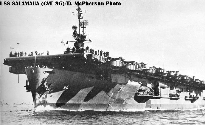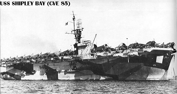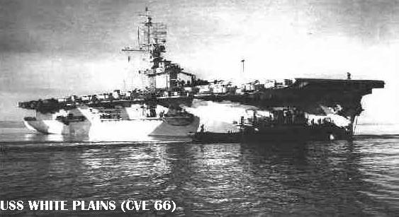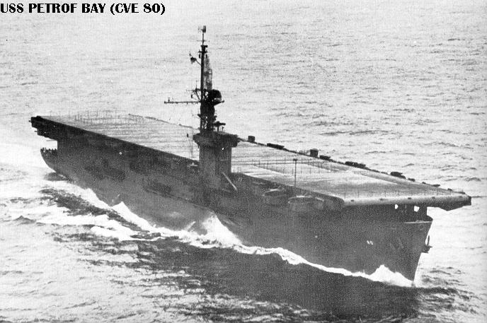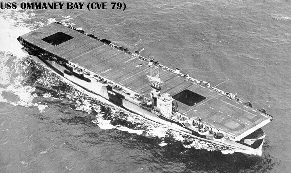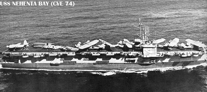 Served in the Pacific, mostly as a transport carrier but saw combat at Samar. Damaged by typhoon 18 Dec 1944.