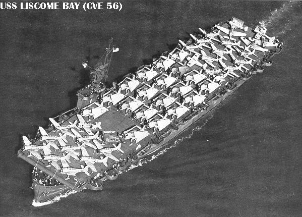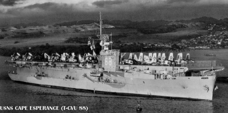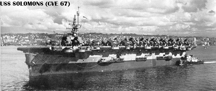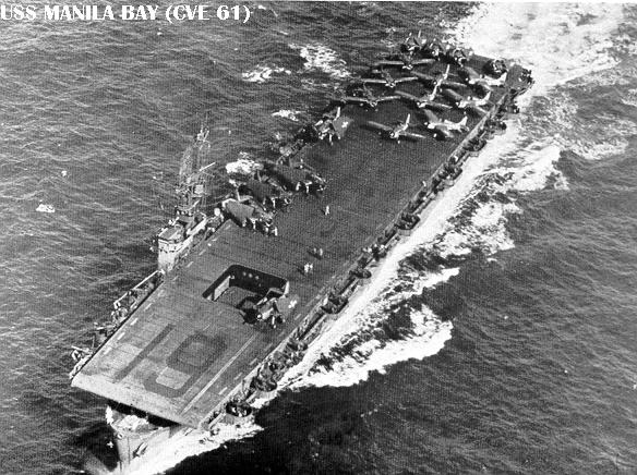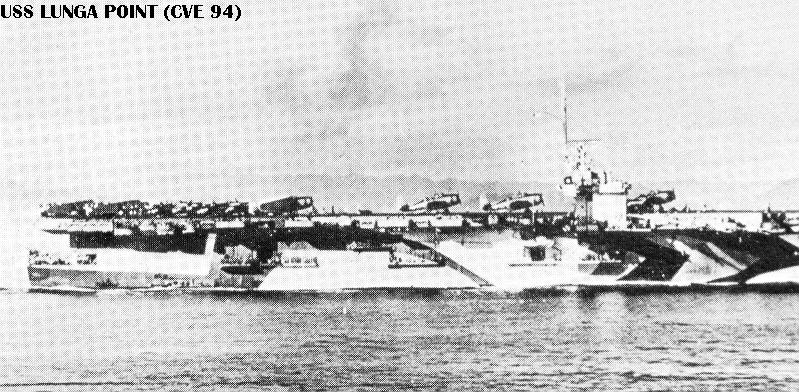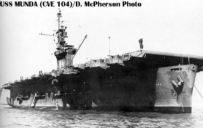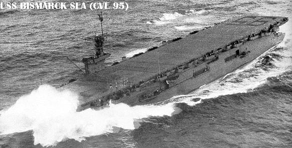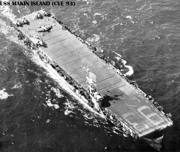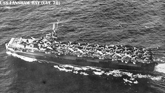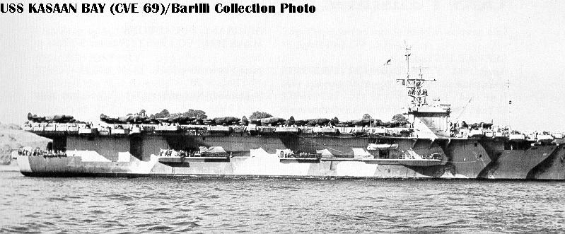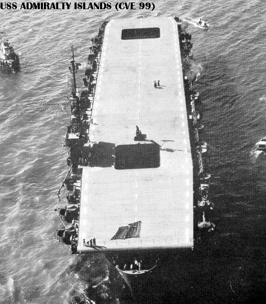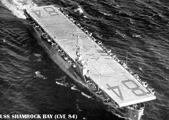 Served in the Pacific, mostly as a transport carrier but saw combat at Samar. Damaged by typhoon 18 Dec 1944.