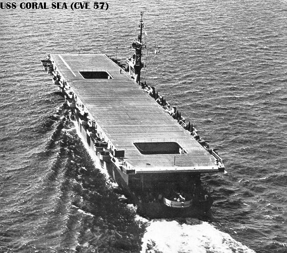 Served as a transport carrier in the Pacific, then as an ASW and transport carrier in the Atlantic.