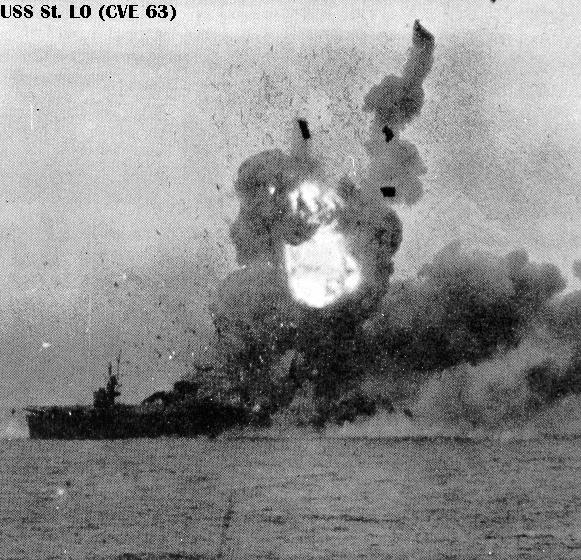 Served as transport and support carrier in the Pacific. Renamed St. Lo 15 Sept 1944. Hit by Kamikaze 25 October 1944 at Leyte, massive explosions resulted, and the ship sank within 30 minutes.