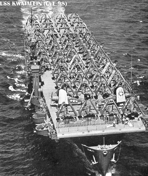 Served as a transport in the Pacific, then as a combat carrier for Okinawa and Iwo Jima.