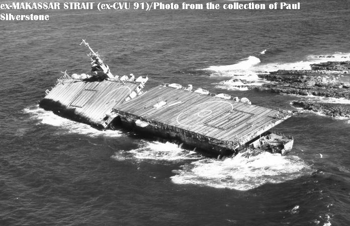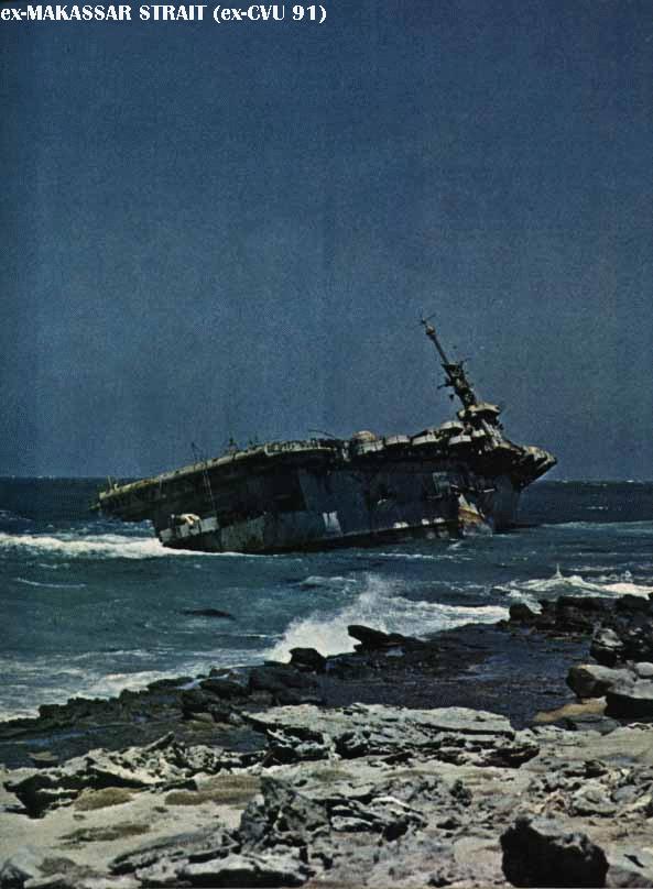 Decommissioned to reserve 9 Aug 1946. Redesignated as a utility carrier (CVU 91) 12 June 1955 while in reserve. Stricken for disposal 1 Sept 1958. Employed as a target ship for Tartar/Terrier tests. Ran aground on San Nicholas Island 4/1961; ship's back was broken and she became a total loss. Eventually broke up.