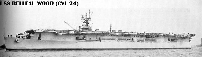 Redesignated CVL 28 15 July 1943. Served with the Carrier TF during WWII. Hit by kamikaze 25 Nov 1944. Decommissioned to reserve 11 Feb 1947. Recommissioned 27 Oct 1948, modernized for service as ASW carrier. Decommissioned to reserve 21 Jan 1955. Redesignated as aviation transport (AVT 3) 5/1959 while in reserve.