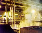A NJT Arrow III Car arrives in Hoboken as steam rises from Track 17