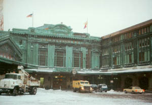 After 1995's first major snowstorm on December 22, 1995, Hoboken Terminal and its trains take on a completely different look.