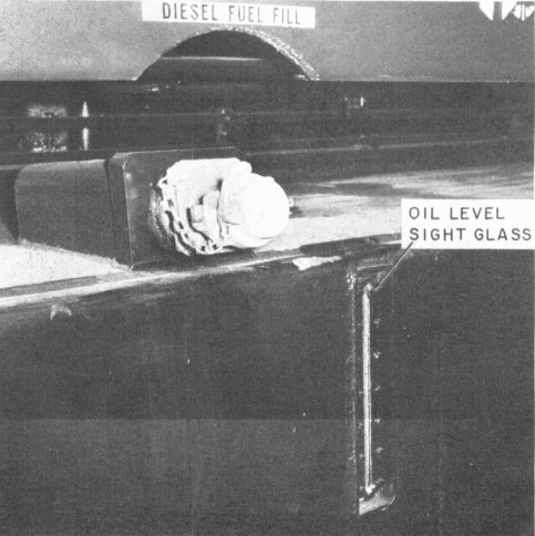 Engine Lubricating-oil Dipstick - Located on the left side of the engine near the lube-oil fill. The stick is marked LOW and FULL. The proper level with the engine idling is FULL. (See Figure 9)
