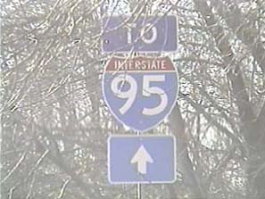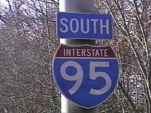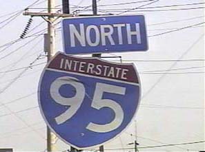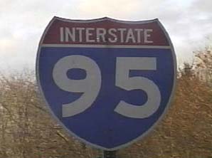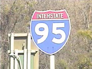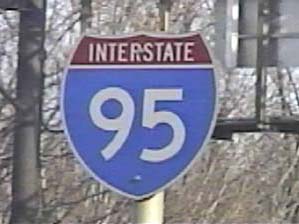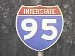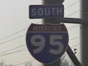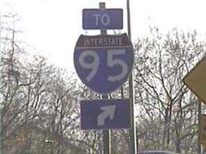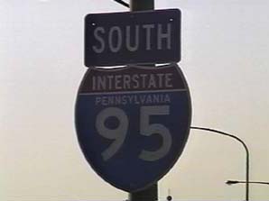 | This signage is on the Delaware Expressway (I-95) southbound just south of Exit 32(Academy Road) in Philadelphia, Pennsylvania. This is the first I-95 shield assembly after the I-95 Eastern Route rejoins I-95 from New Rodgers Road (PA 413). Photo taken January 15, 2002. |