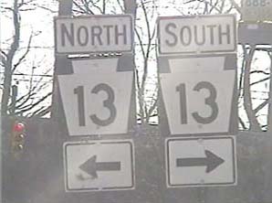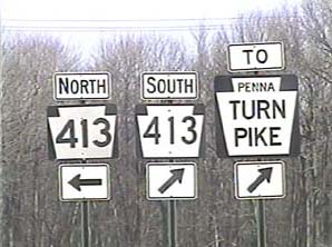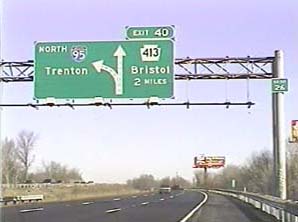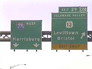 | This signage is on the Pennsylvania Turnpike Delaware River Extension (I-276) Exit 358 ramp to the Bristol Pike (US 13) in Bristol Township, Pennsylvania. Photo taken December 30, 2001. |