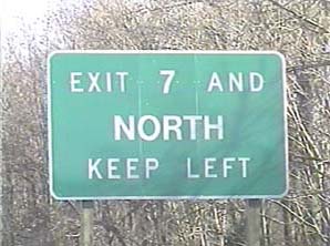 | This signage is on the New Jersey Turnpike Pennsylvania Extension (I-95) northbound south of Exit 6(New Jersey Turnpike South, Camden) in Mansfield Township, New Jersey. These signs are still lacking "I-95 North" markers. Photo taken December 30, 2001. |
