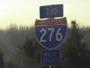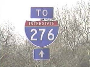 | This signage is on the New Jersey Turnpike (I-95) southbound just south of Exit 7(US 206, Bordentown, Trenton) in Mansfield Township, New Jersey. The "To" banner is a proper indication by the New Jersey Turnpike Authority that the New Jersey Turnpike Pennsylvania Extension (I-95) is not part of I-276, despite erroneous maps which show otherwise. Photo taken January 15, 2002. |