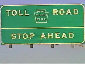 | This signage is on the Pennsylvania Turnpike Delaware River Extension (I-276) Exit 358 ramp to the Bristol Pike (US 13) in Bristol Township, Pennsylvania. Note that while no "To I-95" is mentioned on the mainline for Exit 358, it is prominently signed once past the toll plaza. Photo taken December 30, 2001. |