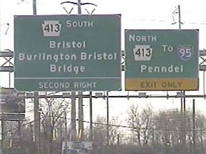 | As explained on the opening page of this website, the I-95 Eastern Route follows the Pennsylvania and New Jersey Turnpikes to the south and east of Trenton. Until the I-95 gap is officially closed via the I-95/I-276 interchange, one must utilize dualized or soon-to-be dualized arterial routes in order to follow the Eastern Route: Bristol Pike (US 13) and New Rodgers Road (PA 413). This page documents the signage along that route. To see the route itself in detail, please go to the Pennsylvania Turnpike Delaware River Bridge (I-95 Eastern Route and I-276) and New Jersey Turnpike Pennsylvania Extension (I-95 Eastern Route) pages, and the corresponding New Jersey Turnpike (I-95 and I-95 Eastern Route) page. No photo pages are available on this site for the Pennsylvania Turnpike Delaware River Extension (I-276), Bristol Pike (US 13), New Rodgers Road (PA 413), Delaware Expressway (I-95), Wilmington Expressway (I-95), or Delaware Turnpike (I-95). |