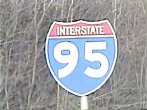 | This signage is on the New Jersey Turnpike (I-95) northbound north of Exit 9(NJ 18, US 1, New Brunswick, East Brunswick, Rutgers University) in New Brunswick, New Jersey. It is the first I-95 shield posted on I-95 after the I-95 Gap Western Bypass joins I-95 at Exit 9. Again note it is of the unusual 1997 font style. Photo taken January 15, 2002. |