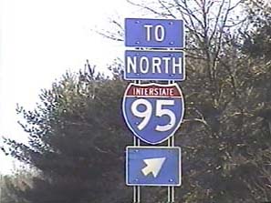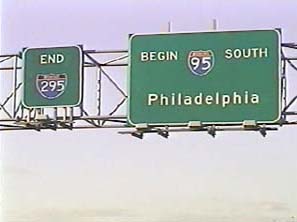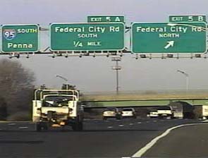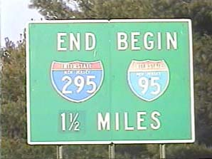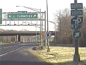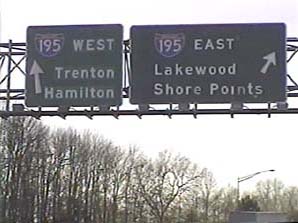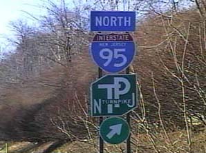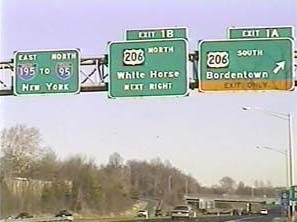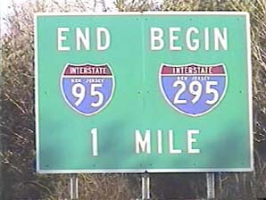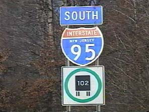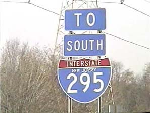 | This signage is on the Camden Freeway (I-295) northbound north of Exit 65(Sloan Avenue) in Hamilton Township, New Jersey. Photo taken December 30, 2001. |