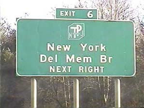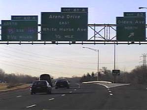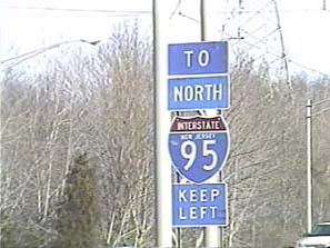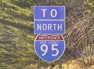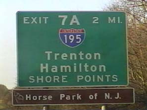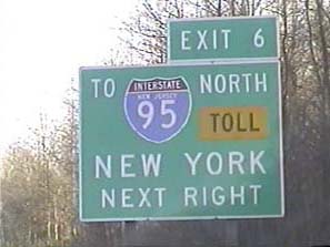 | This signage is on the Camden Freeway (I-95) northbound just south of Exit 8B(North CR 583, Princeton Pike) in Lawrence Township, New Jersey. Photo taken December 30, 2001. |