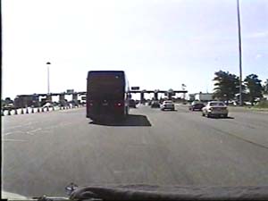 | This is the Atlantic City Expressway, NJ 446 east, just west of exit 17(NJ 50, Egg Harbor, Mays Landing) in Hamilton Township, at the Egg Harbor Toll Plaza. Filmed August 21, 2000. |