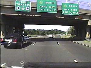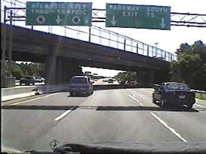 | This is the Atlantic City Expressway, NJ 446 west, at exit 7(Garden State Parkway, New York, Cape May) in Egg Harbor Township. Filmed August 21, 2000. |