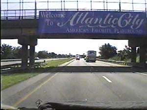 | This is the Atlantic City Expressway, NJ 446 west, east of exit 4(Absecon, Pleasantville) in Pleasantville. The Atlantic City Welcome Center and Service Plaza is on the left. Filmed August 21, 2000. |