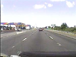 | This is the Atlantic City Expressway, NJ 446 west, well east of exit 28(NJ 54, Hammonton, Trenton) in Hamilton Township, at the Farley Service Plaza. Filmed August 21, 2000. |