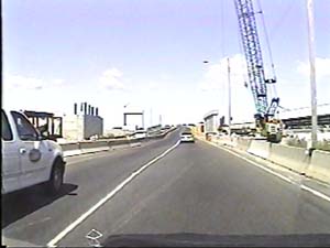 | This is the Atlantic City Expressway, NJ 446 west, just west of the beginning in Atlantic City. The construction for the new Brigantine connector is visible direclty ahead. Filmed August 21, 2000. |