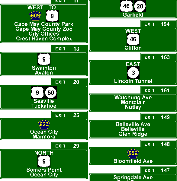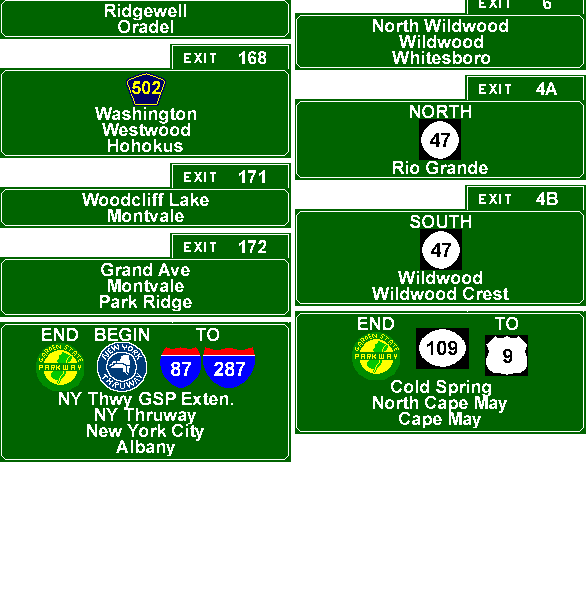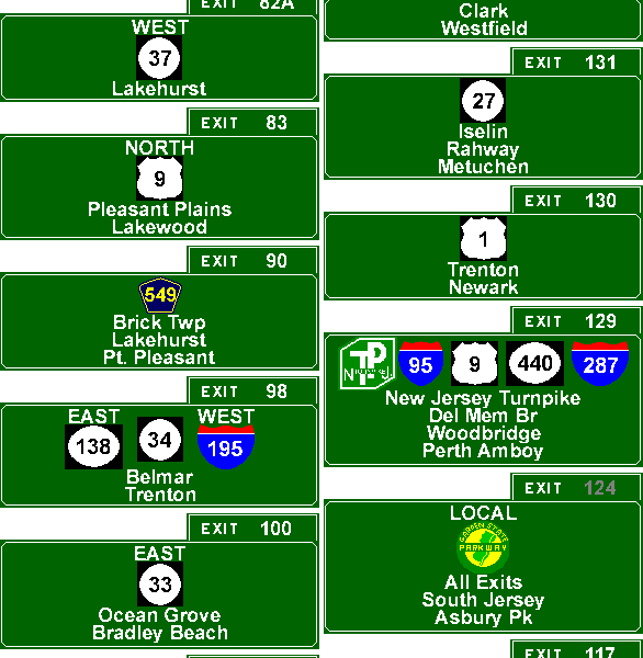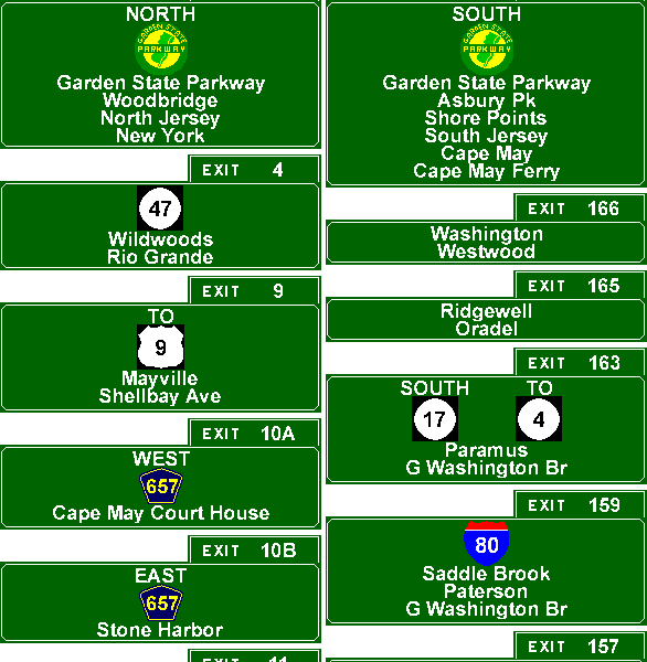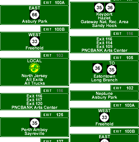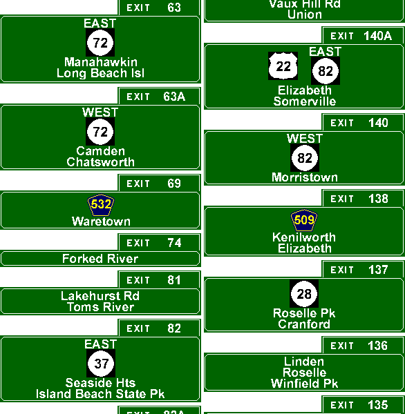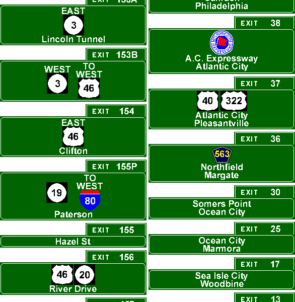 | Exit list for the Garden State Parkway (GSP). Exit graphics courtesy of Jeff Taylor and Scott Oglesby. |