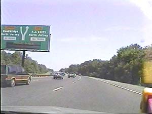 | This is the Garden State Parkway Local Lanes, NJ 444 south, just south of exit 116(PNCBANK Arts Center, Telegraph Hill Nature Area) in Holmdel Township. Filmed July 24, 2001. |