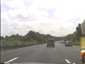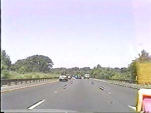 | This is the Garden State Parkway Local Lanes, NJ 444 north, south of exit 109(CR 520, Red Bank, Lincroft) in Tinton Falls Boro. Filmed July 22, 2001. |