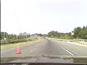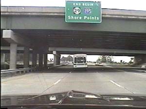 | This is the Central Jersey Expressway, I-195 west, east of exit 28(US 9, Freehold, Lakewood) in Howell Township. Filmed July 27, 1999. | ||||||||||