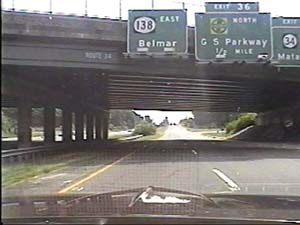 | This is the end of the Central Jersey Expressway, I-195 east, at exit 35(NJ 34, South GSP, Brielle, Pt Pleasant, Matawan) in Wall Township. NJ 138 begins here, and continues east past the Garden State Parkway to Belmar. Filmed July 27, 1999. | ||||||||||
