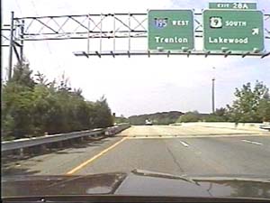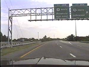 | This is the Central Jersey Expressway, I-195 east, at exit 28(US 9, Lakewood, Freehold) in Howell Township. Filmed July 27, 1999. | ||||||||||