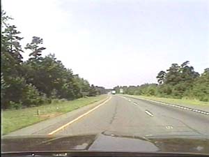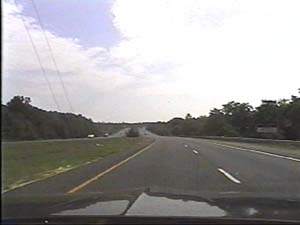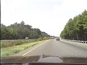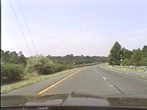 | This is the Central Jersey Expressway, I-195 west, west of exit 22(Jackson Mills, Georgia) in Jackson Township. Note the groves of Pitch Pines on both sides of the road, as this section is well within the New Jersey Pine Barrens. Filmed July 27, 1999. | ||||||||||