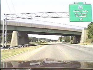 | This is the Central Jersey Expressway, I-195 west, at exit 16(CR 537, Mount Holly, Six Flags, Freehold) in Jackson Township. Filmed July 27, 1999. | ||||||||||