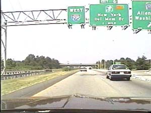 | This is the Central Jersey Expressway, I-195 east, just west of exit 7(CR 526, Washington, Allentown) in Washington Township. Filmed July 27, 1999. | ||||||||||