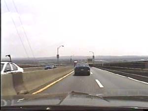 | This is the middle of the Goethals Bridge, I-278 east, crossing from Elizabeth, New Jersey, to Staten Island, New York. Filmed July 27, 1999. | This is the middle of the Goethals Bridge, I-278 west, entering Elizabeth, New Jersey, from Staten Island, New York. Filmed July 27, 1999. | |||||||||