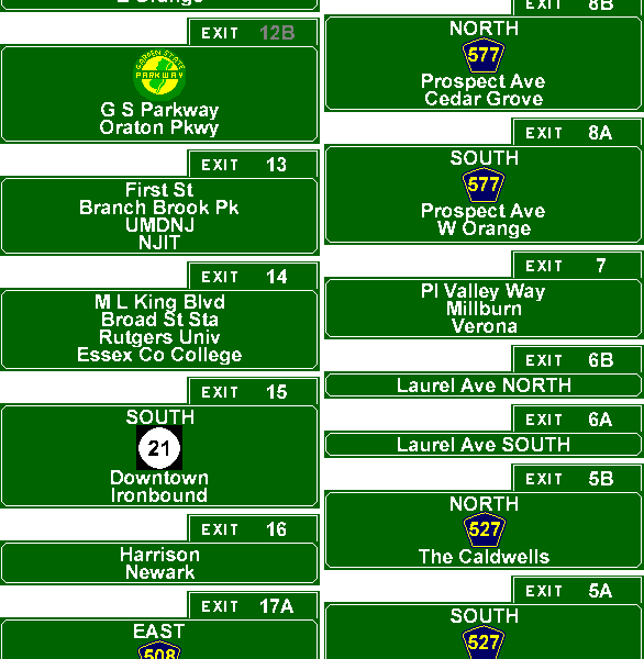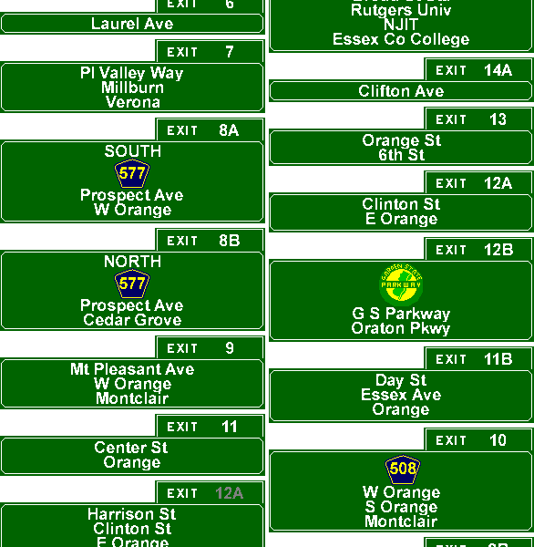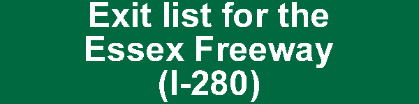 Exit list for the Essex Freeway (I-280). Exit graphics courtesy of Jeff Taylor and Scott Oglesby. |