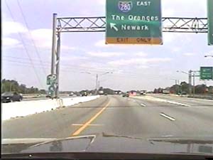 | This is the Essex Freeway, I-280 east, at exit 12(Garden State Parkway, Oraton Parkway, Harrison Street, Clinton Street, East Orange) in East Orange. Filmed July 27, 1999. |