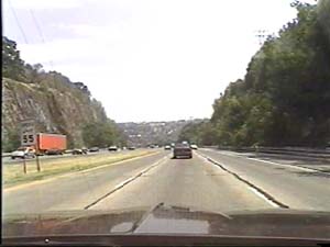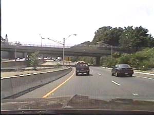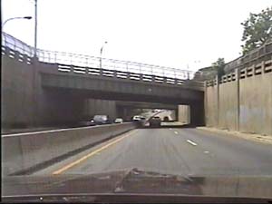 | This is the Essex Freeway, I-280 east, just west of exit 7(Pleasant Valley Way, Millburn, Verona) in West Orange Township. Filmed July 27, 1999. |