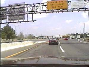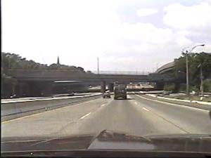 | This is the Essex Freeway, I-280 east, west of exit 4(Eisenhower Parkway) in East Hanover Township. Filmed July 27, 1999. |
