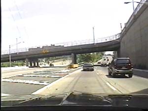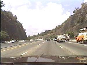 | This is the Essex Freeway, I-280 west, west of exit 4(Eisenhower Parkway) in East Hanover Township. Filmed July 27, 1999. |