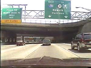 | This is the Essex Freeway, I-280 east, at exit 13(First Street, Branch Brook Park, UMDNJ, NJIT) in Newark. Filmed July 27, 1999. |