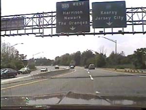 | This is the Essex Freeway, I-280 east, just west of exit 17(CR 508, Jersey City, Kearny, Last Exit Before Toll) in Kearny. Filmed July 27, 1999. |